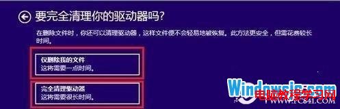 之后系统会出现两个选项,“仅删除我的文件”和“完全清理驱动器”,大家可根据自行需要进行选择。