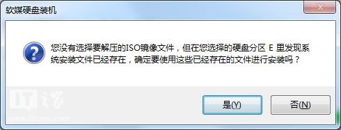 2、若盘符内含有相应的镜像解压文件,那么下次再次重装系统时,只需直接在步骤二中选择相应盘符,就会提示“安装镜像文件已存在”。直接选择“是”就可以使用了,无需二次解压。