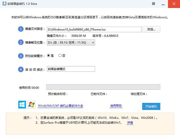 下面,我们通过一个在Win8.1 Pro 64位系统下安装Win10预览版Build9860 32位系统的过程,来展示下软媒硬盘装机功能的具体用法,一起来看看: