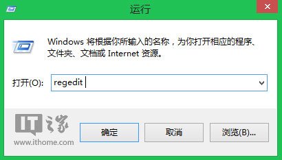 2、在运行命令框输入regedit,手动打开注册表编辑器;