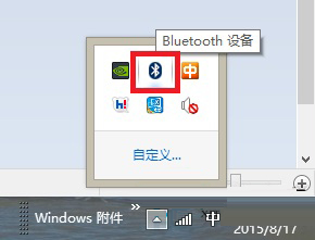 1、在Win8.1系统的桌面位置,单击任务栏通知区域的蓝牙图标;