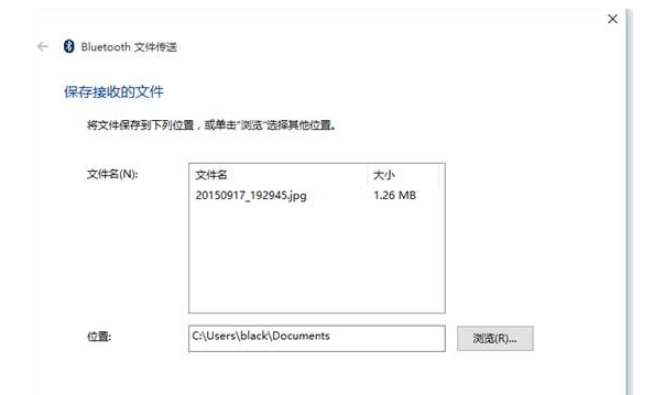5、这时候电脑上会收到提示信息,看到保存接收的文件,可以手动进行修改文件的保存位置,单击完成。