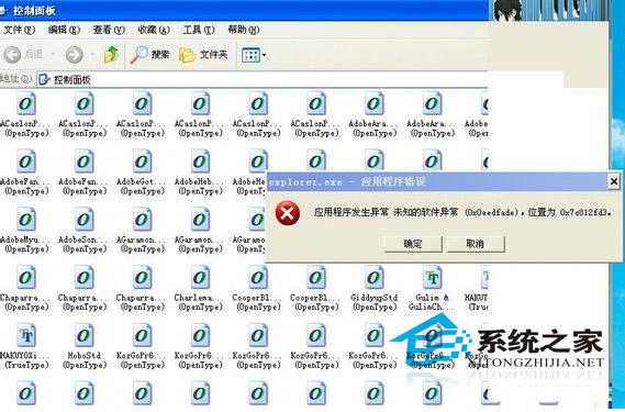 不少用户想修改WinXP系统的字体时,进入控制面板-字体,弹出应用程序错误的对话框,之后点击确定就会自动关闭,无法修改字体。遇到这种情况的原因是多方面的,可以通过下面的方