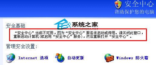 一些WinXP用户在开启安全中心时,发现无法打开,提示:安全中心现在不可用,因为它相关的服务没有启动或被停止了。请关闭这个窗口并重启电脑(或者启动安全中心服务)然后再次打