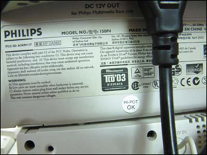 如果去市场买显示器可能无法上网查询,因此需要通过下面这个小窍门来分辨真伪。一个TCO认证的塑料标贴作起来很容易,成本也很低,但是显示器达到TCO认证标准却很难,尤其是严格的TCO'03。一般真正通过TCO'03认证的显示器,不只在前面贴有标志,在显示器后部铭牌上也应该有刻蚀的认证标志,而那些只在“面子上”贴TCO'03的,基本可以肯定为伪造的(进一步可按照前面的方法确认一下)。在这方面,那些小厂作假功夫很强,大家购买一定小心(见图2)。