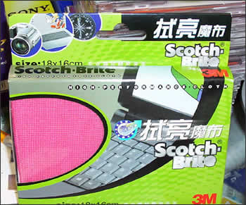 可反复使用的擦屏布一般又有粗布和柔布之分。粗布的表面凹凸不平,看起来就像毛巾,但其实由于其采用了特殊的纤维做材料,而且还对纤维结构作了精密的安排,所以比起毛巾来密度要大得多。粗布的好处是可加大与屏幕表面的磨擦,而且吸水和吸尘力特强,从而能擦除比较顽固的污垢,但由于其纤维密度相对较低些,所以容易造成有些屏幕表面擦不到。柔布表面有点像丝绸布,非常平坦,它的特点是纤维组织结构非常精密,密度极高,不会“错过”屏幕表面的每一点地方。因此,笔者建议用户最好同时购买一块粗布和软布,擦拭时先用粗布将液晶屏顽固的污垢擦干净,然后再用软布来作后期的“打磨”处理,如此擦出来的效果就非常好了。为此,有些厂商还将粗布和软布包装在一个盒子里销售,当然,价格就比较贵了,通常二条在30元以上。