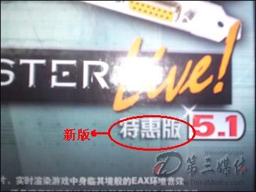 另外,从外包装上我们也可以清楚地分辨出新、旧两款的声卡,新版的外包装较旧版稍小,而且有“特惠版”字样,旧版没有。