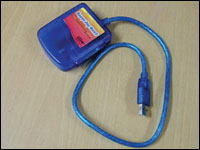 这种转接线可以转接任何PS游戏机上的设备(如手柄、方向盘等)。深蓝色磨砂透明的外壳,比较的前卫。一边是USB接口,另一边是一个小盒子,上面有一个PS手柄的接口,支持震动设备,电能来源于USB口。不过单凭USB的电压,手柄的震动效果不是很好。所有标准PS游戏设备一律可以使用。这种转接线对于一些热衷PS游戏(如实况系列、寂静之岭系列)的玩家来说是一个福音。这是一个单一设备的转接器,还有两个和四个设备共同转成一个USB口的转接器。当然价格也是不一样的。一对一、二对一、四对一的价格分别为60、75、120元。