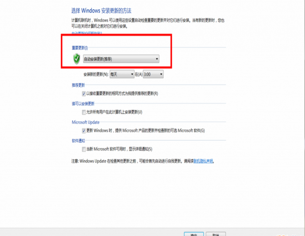 8 开启“系统自动更新”,在“控制面板”里“系统和安全”中的“Windows Update”,左侧“更改设置”,选择“自动安装更新(推荐)”自动更新打开后,电脑会在接下来几个小时甚至几天内,经常下载更新,估计要下载400多MB,然后不停的安装打补丁,特别是在下班了关闭计算机的时候,会提示还有127个更新,我去,估计得等几十分钟,此时不要断电或者强制关机,会造成系统和硬件损坏。只有一个办法,等。