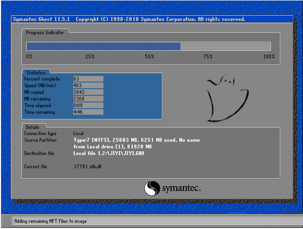 第四步、重启系统。重启后会自动进入ghost界面进行安装系统。该过程完全自动化,不需要人为干预的。同学们记得不要操作不要断电就好,相信大家也懂得,就跟手机刷机一样。