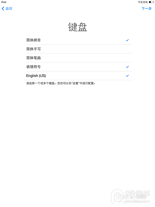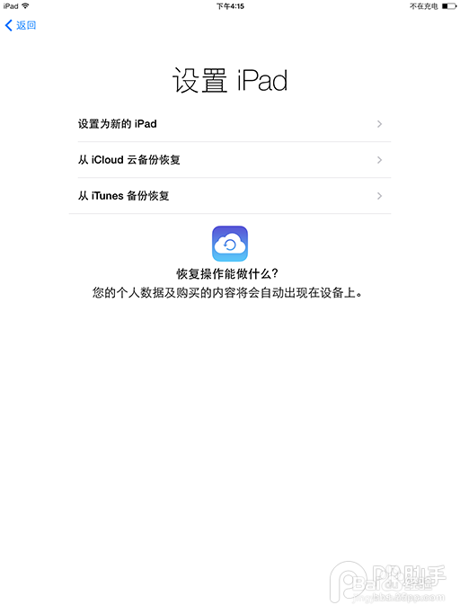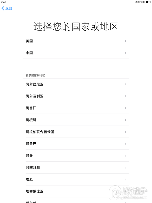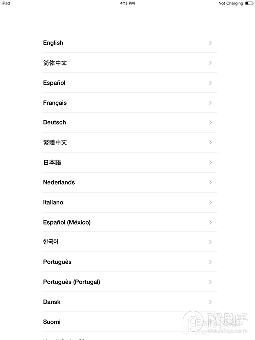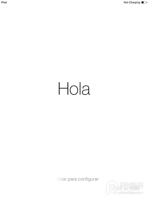 2、因为新版的iPad mini2配置的是全新的IOS7系统,所以其激活界面是跟以往的iPad是完全不一样的,首先看一下开机之后首先看到的界面: