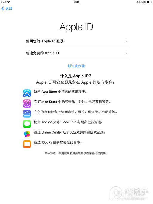 8、设置AppleID界面:没有ID的可以顺便注册一个,方便以后使用