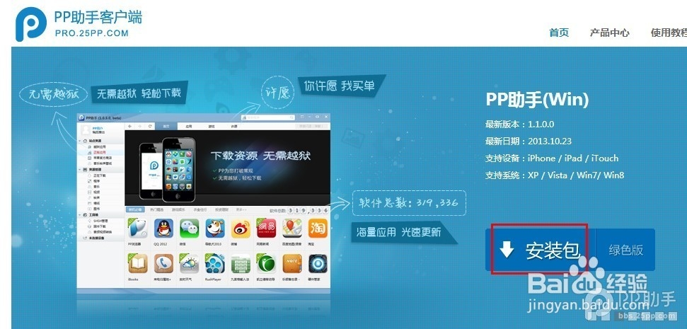 2、在百度上搜索PP助手!然后到pp助手官网下载最新版本的pp助手win版