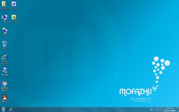 6.经过一段时间的等待后,魔法猪一键系统重装完成。下面是魔法猪专属windows7 64位操作,专属的魔法猪壁纸,干净整洁的桌面,您是否喜欢呢?如图六