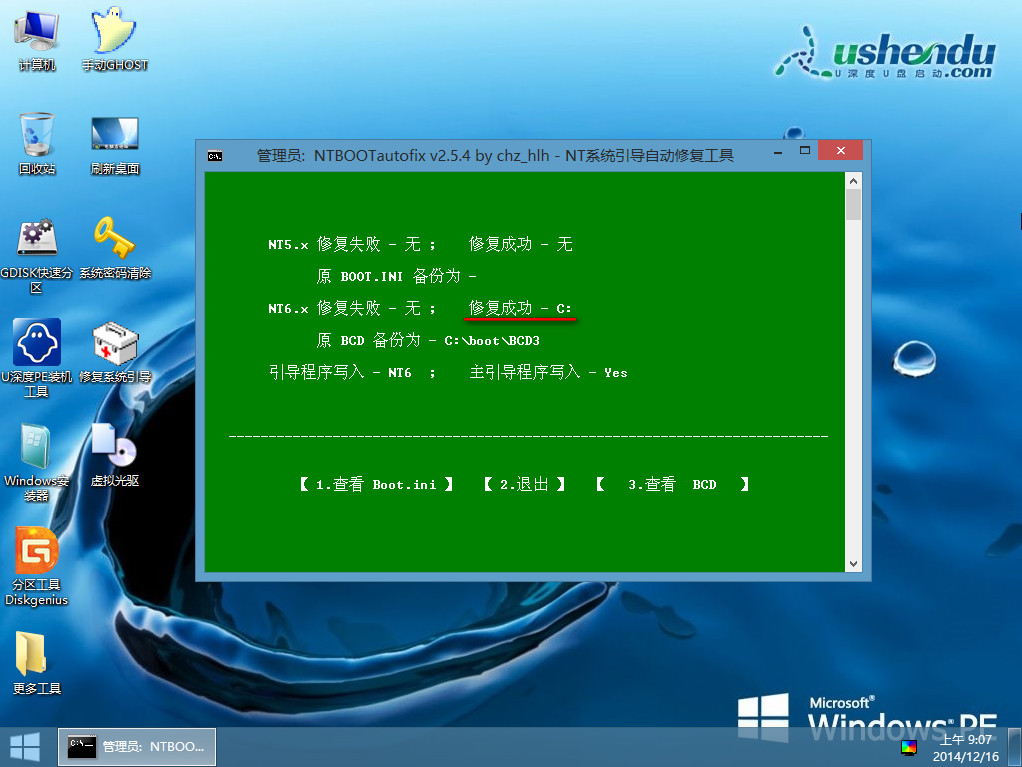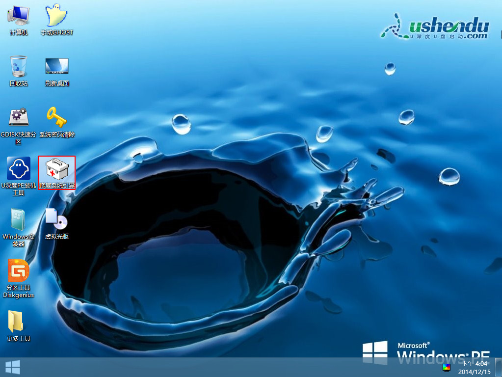 2、进入pe系统后,点击系统桌面“修复系统引导”工具,如下图所示: