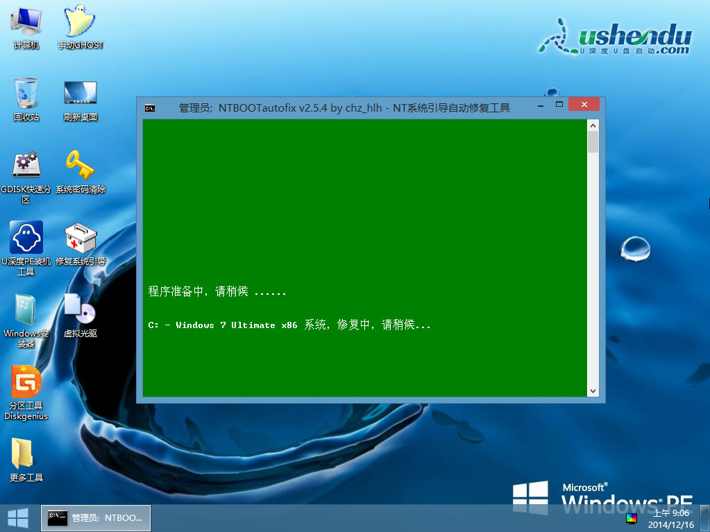 4、耐心等待工具进行修复系统引导,如下图所示: