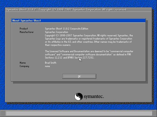 5、如下图,已启动了GHOST系统.用鼠标按OK键进入下一步.或ALT+O也可。