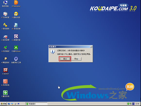 4.当点击"开始(Y)"按钮后会弹出一个小窗口,点击该弹出窗口的"是(Y)"按钮即可,如下图: