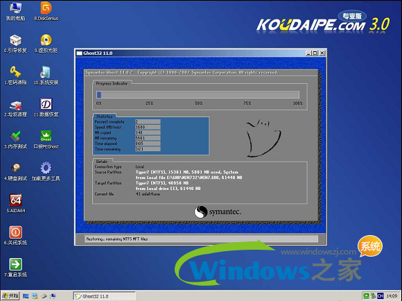5.接下来会出现一个正在解压GHO的窗口,该窗口有进度条,在此旗舰您无需做任何操作,只需耐心等待其完成即可,如下图所示: