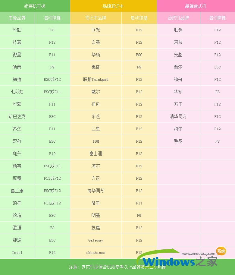 2、因为目前市面上主板类型丰富多样,启动热键也不尽相同。所以口袋PE小编整理了各种品牌主板一键进入口袋PE的启动热键,您可以在下面的列表中查找自己相应 的主板品牌,相信通过您查找的热键可以很方便的进入U盘PE主界面。