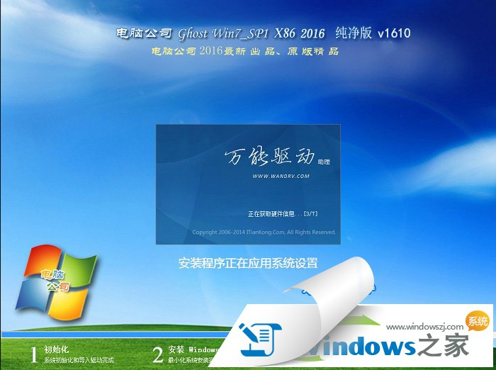GhostWin7是指使用 Ghost软件做成压缩包的Windows7,俗称克隆版Win7。用克隆版的目的是节省安装时间。本作品在采用微软封装部署技术的基础上,结合作者的实际工作经验,融合了许多实用的功能。它通过一键分区、一键装系统、一键Ghost备份(恢复)等一系列手段,使装系统花费的时间缩至最短,极大地提高了工作效率。鲜明的行业特征:本系统名为电脑公司纯净版,具有鲜明的行业特征,或许你对电脑公司Win7系统不是很了解。