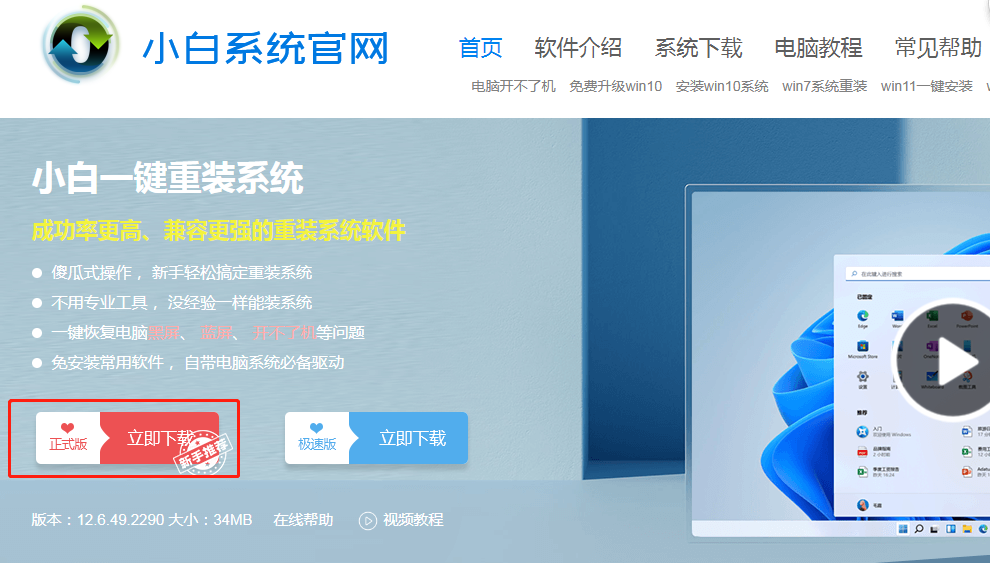 电脑系统崩溃、蓝屏等,我们可以使用一键重装系统软件来帮我们解决。下面我们看看如何官网下载小白一键重装系统。