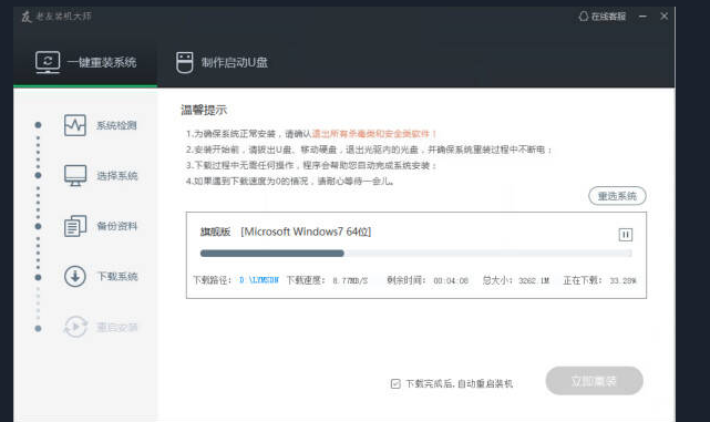 总结:下载软件,选择系统,等待加载,重启电脑就可以。