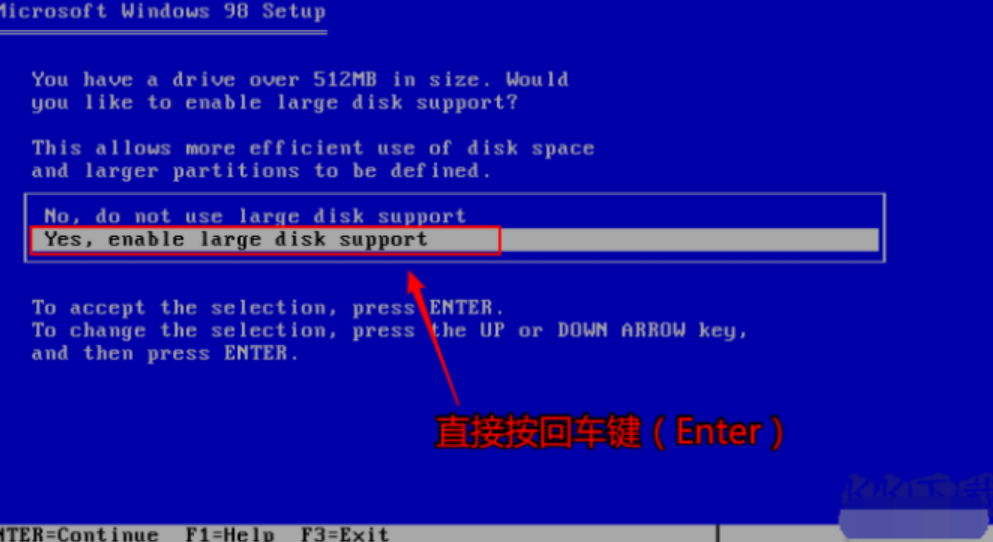 5、这里选择Yes, enable large disk support 回车。