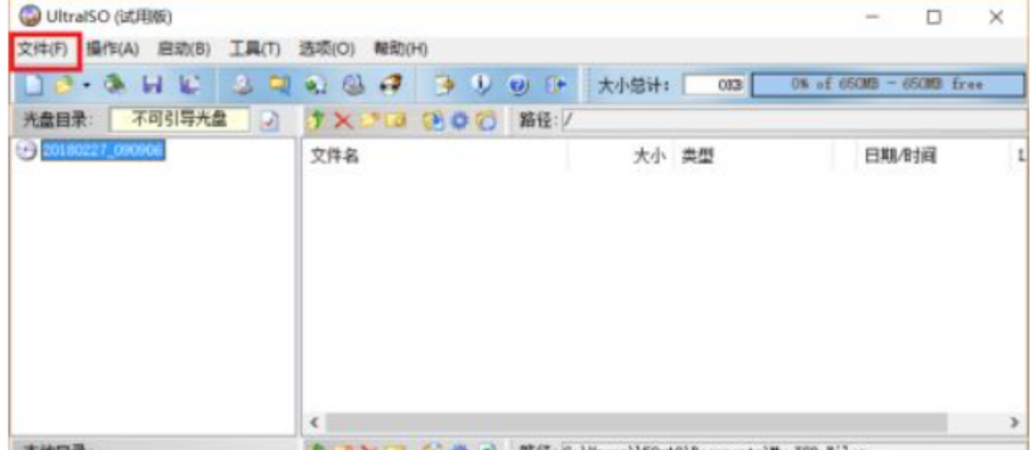 2、打开UltraISO工具后,点击左上角的文件打开。选择我们下载好的CentOS 7.4 安装镜像,然后点击打开。