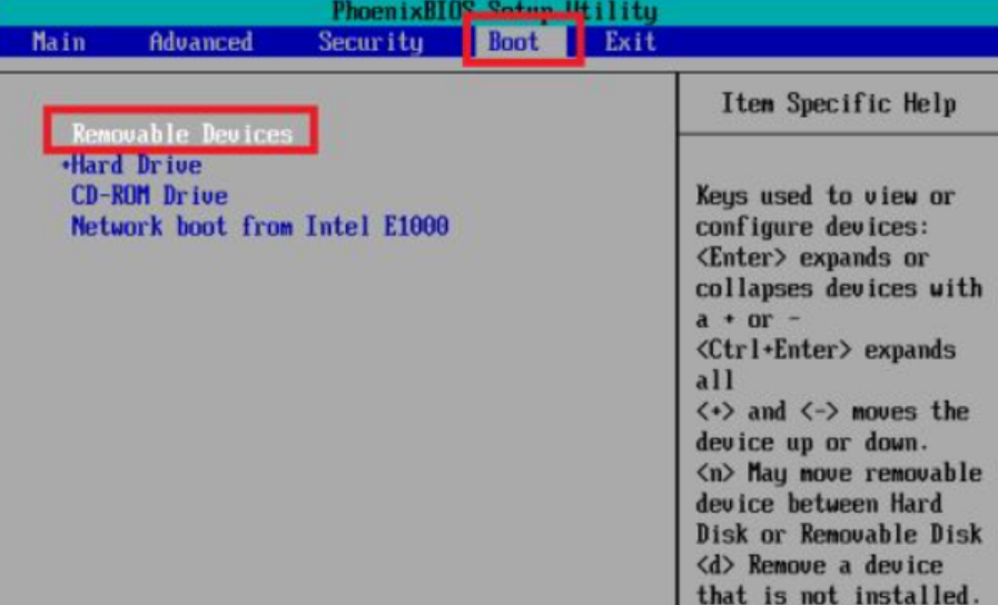 1、U盘插到要安装Linux的电脑上后,启动电脑时一直按F2键(其他的电脑主板启动键可能不同,自行查找即可)就能进入到主板的BIOS控制界面,找到boot选项然后移到removeable device选项,因为我这台电脑比较老,所以U盘只能显示为removeable device,对于一些比较新的主板,可以直接显示出U盘的名称。然后用+号上下键等移到最上方第一启动项,接着按F10保存设置按回车确认,系统便会重启进u盘启动了。