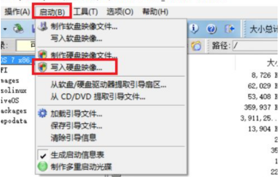 3、接着在UltraISO界面就能看到镜像里的所有文件了,然后点击界面上的启动选项,选择写入硬盘映像制作启动盘。等待软件监测到我们插入的U盘,期间会格式化U盘。选择好以后,点击写入,硬盘镜像就会开始制作,我们耐心等待制作完成即可。