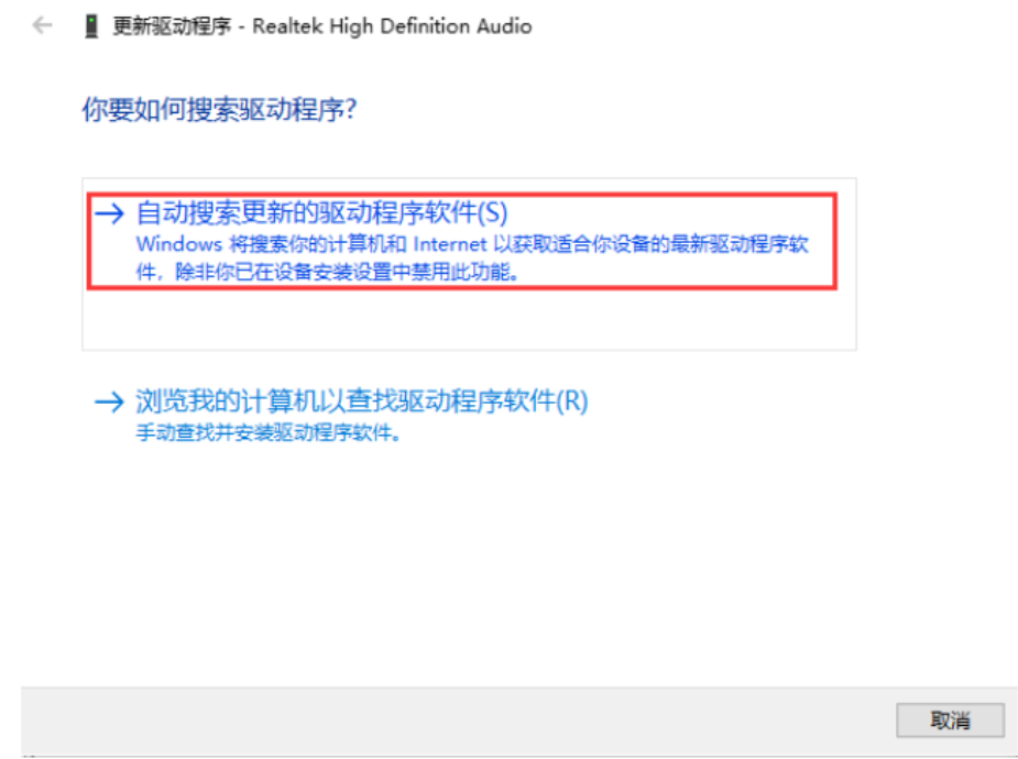 3、在打开的页面中选择“自动搜索更新的驱动程序和软件”。