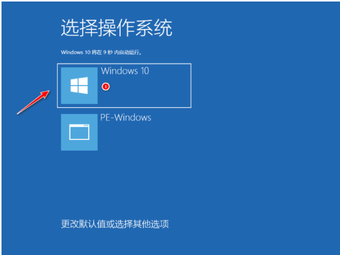 7、选择新安装好的windows10系统即可。