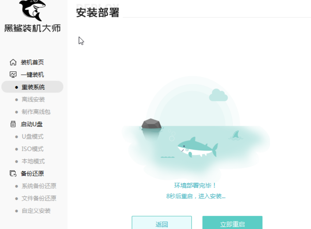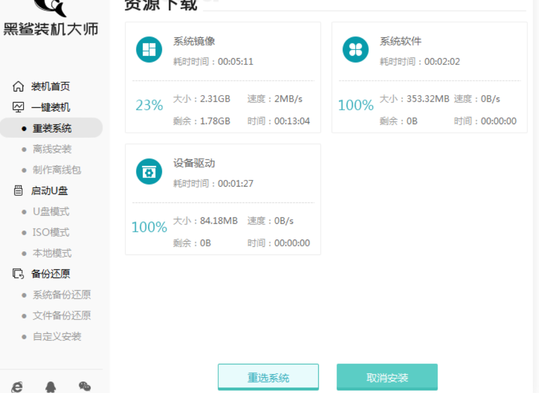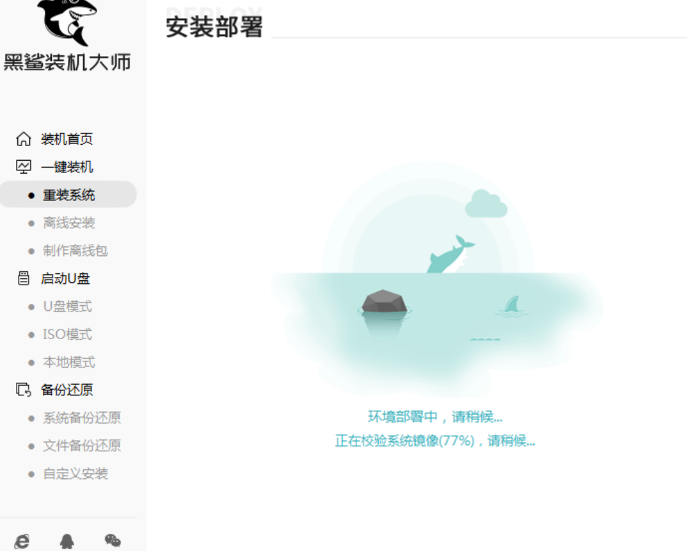 第六步黑鲨开始下载系统文件并部署环境,全程无需手动进行操作。