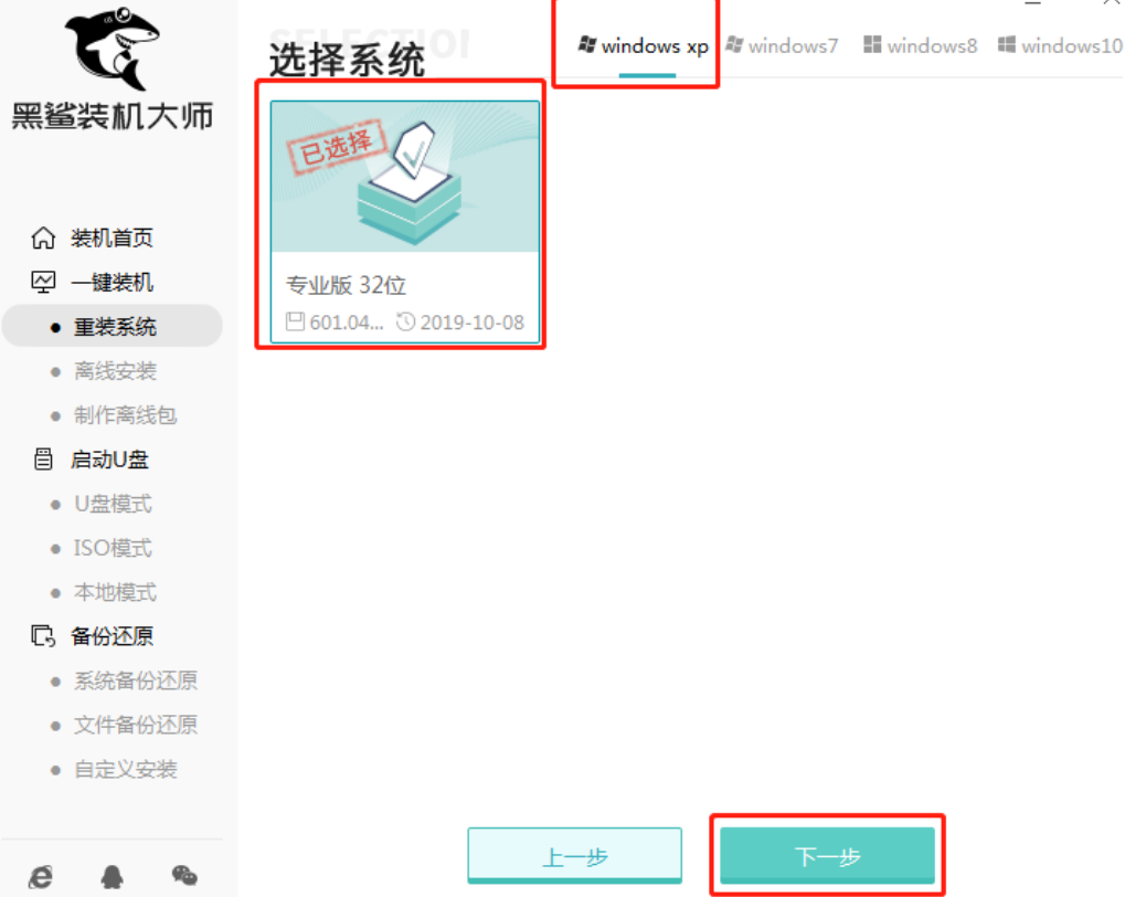 第三步在“windows XP”下选择系统文件后点击“下一步”。