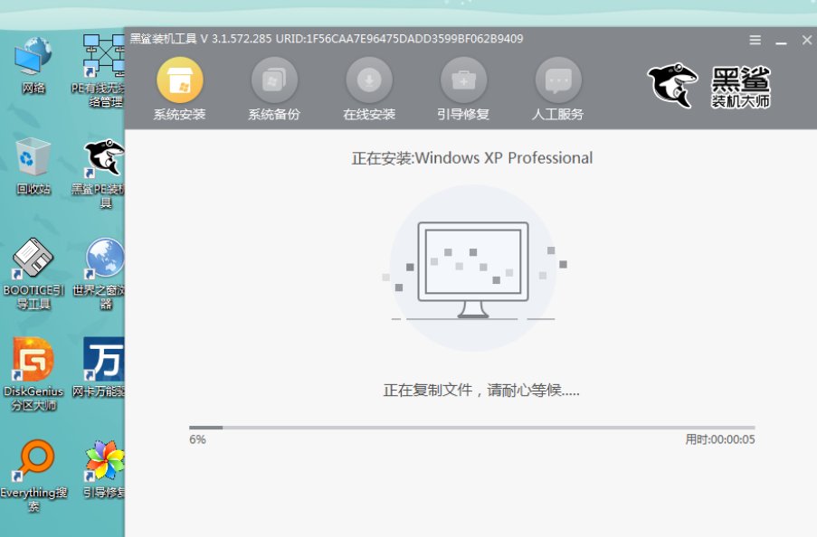 第八步黑鲨开始自动安装XP系统,全程无需手动操作,等安装完成后“立即重启”电脑。