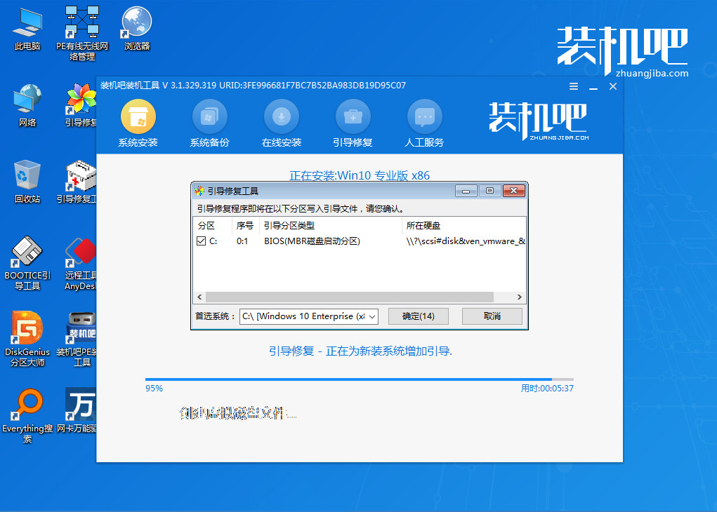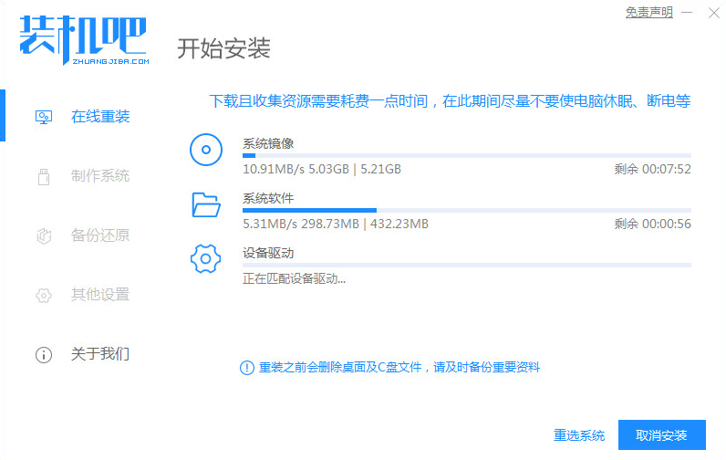 6.进入系统后,我们打开装机吧一键重装系统软件,开始自动安装系统镜像文件,无需我们手动操作,耐心等待安装完成。