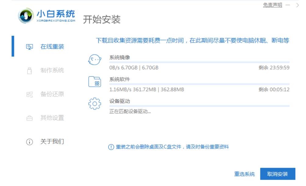 5、进入pe系统后,小白装机工具会自动安装系统。