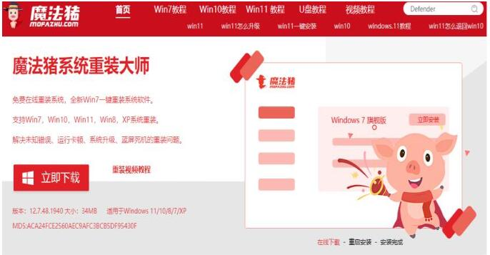 以上就是小编给大家讲解了关于电脑系统重装的方法,这里使用到了魔法猪系统重装软件用了一键重装和U盘重装两种方法,还介绍了魔法猪系统重装工具的注意事项,这是一款功能齐全,操作方便简单的系统重装工具,希望对小伙伴们有所帮助。