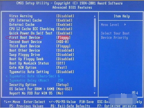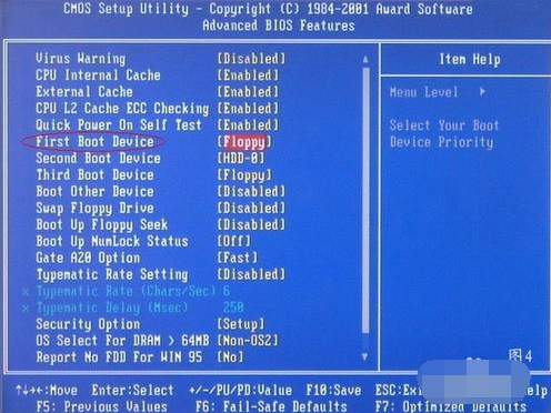 3、移动键盘左边的上下左右光标键,选择下图的指示。