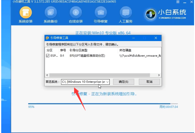 5、重新启动并选择第二个小白PE系统。