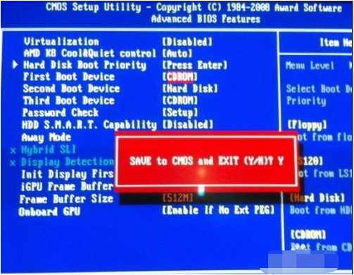6、然后按F10保存,键盘上键[Y]就行了。