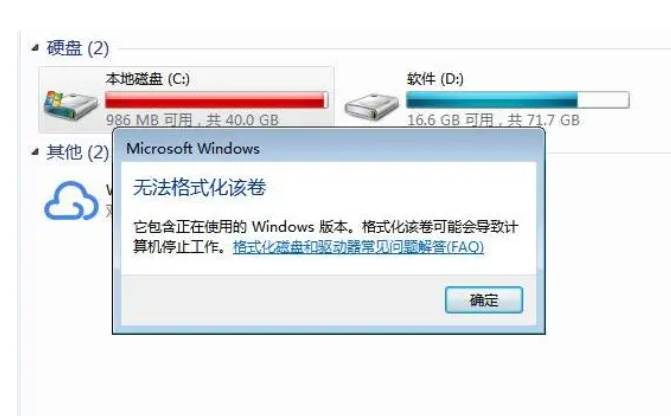 2、如果直接从系统中获得格式化硬盘C盘,也会导致计算机立即崩溃,格式化硬盘很可能不成功。