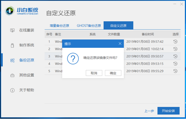 6、小白系统会提示是否进行还原,点击确定后小白系统会进行镜像文件的拷贝以及安装环境的搭建。