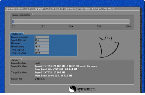 4、系统跳转到GHOST系统安装界面,此过程需要时间耐心等待完成。