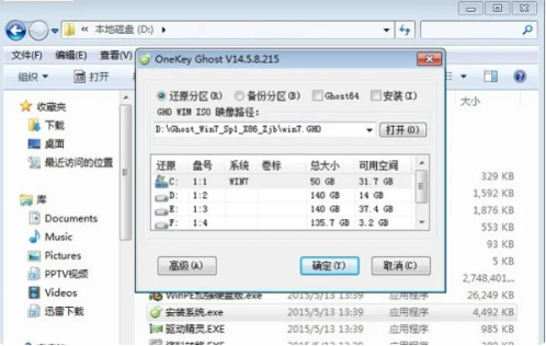 3、在弹出OneKey Ghostp安装对话框,直接点击确定继续下一步操作。