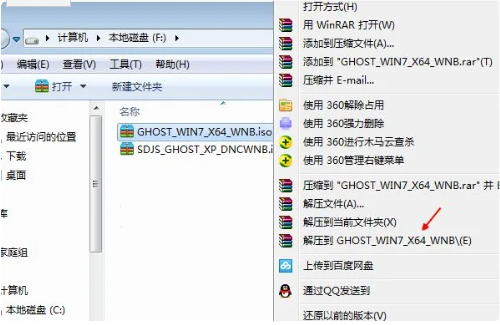 1、完成iso镜像文件下载,通过鼠标右键winrar等工具将压缩文件解压到除C盘以外的盘符分区。