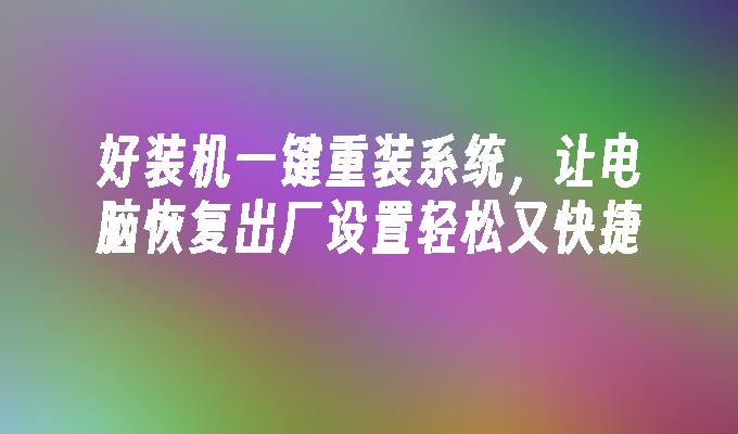 好装机一键重装系统,让电脑恢复出厂设置轻松又快捷