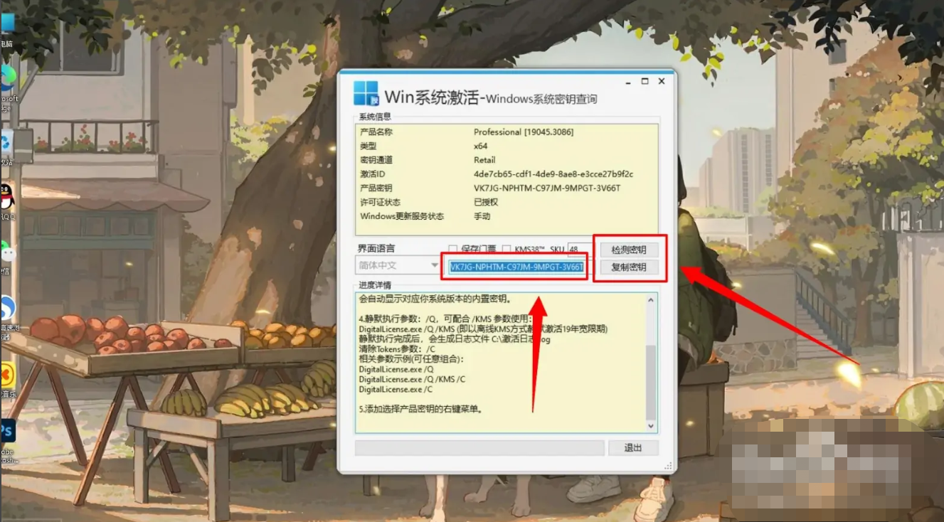 3、击检测密钥,等待密钥检测生成以后复制一下。
