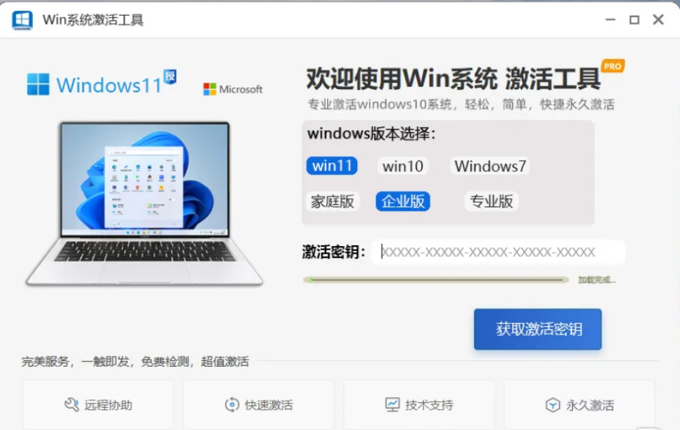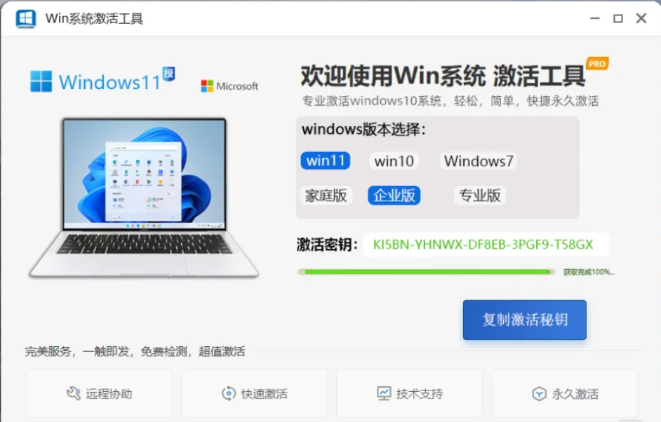 3、进入工具后选择电脑Windows版本,再点击获取激活密钥,等待密钥生成,然后对密钥进行复制。